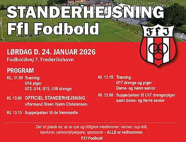 Vi er glade for at kunne præsentere den nye bestyrelse i FfI Fodbold, som blev valgt på vores generalforsamling.Bestyrelsen 2025:Formand: Anders Brandt SørensenNæstformand: John HansenBestyrelsesmedlemmer: Steen...LÆS MERE