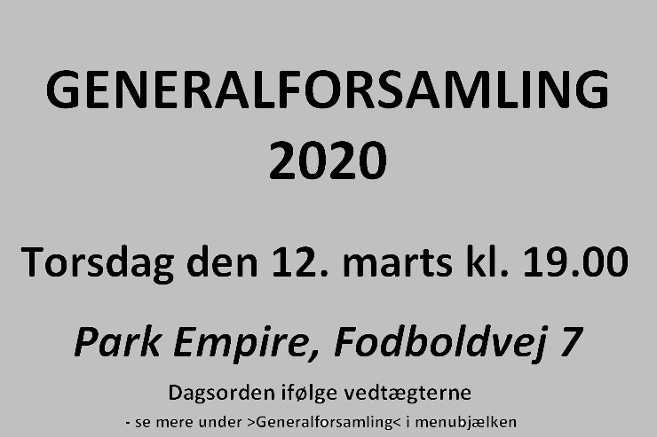 Generalforsamling 2020feb 26,2020- husk Generalforsamling torsdag den 12. marts kl. 19.00 <> Back to Nyheder