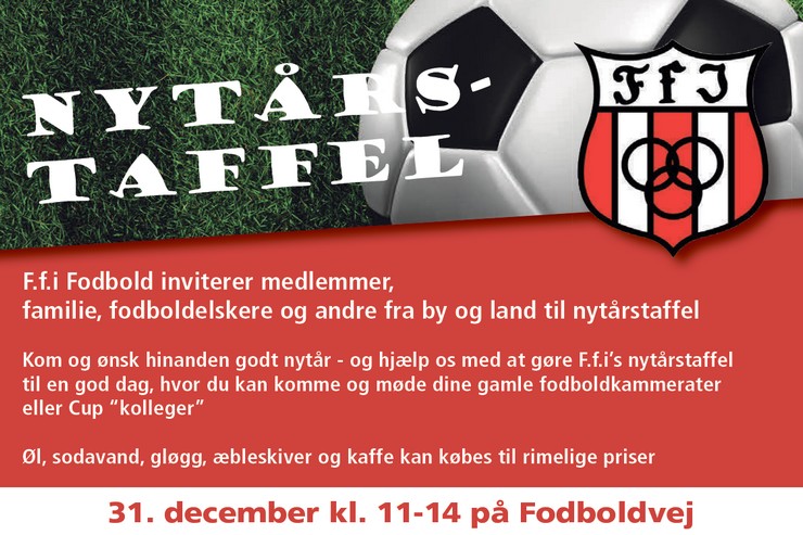 Nytårstaffel 2019dec 10,2019F.f.I Fodbold inviterer medlemmer, forældre, familie, fodboldelskere og andre fra by og land til nytårstaffel på Fodboldvej <> Back to Nyheder